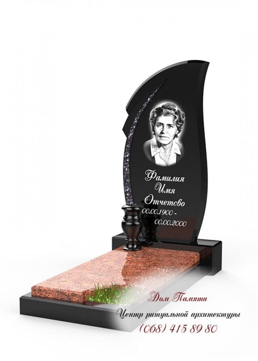 Памятник с инкрустацией из гранита БУКинского месторождения. Модель - ИНК024. Вертикальный памятник
