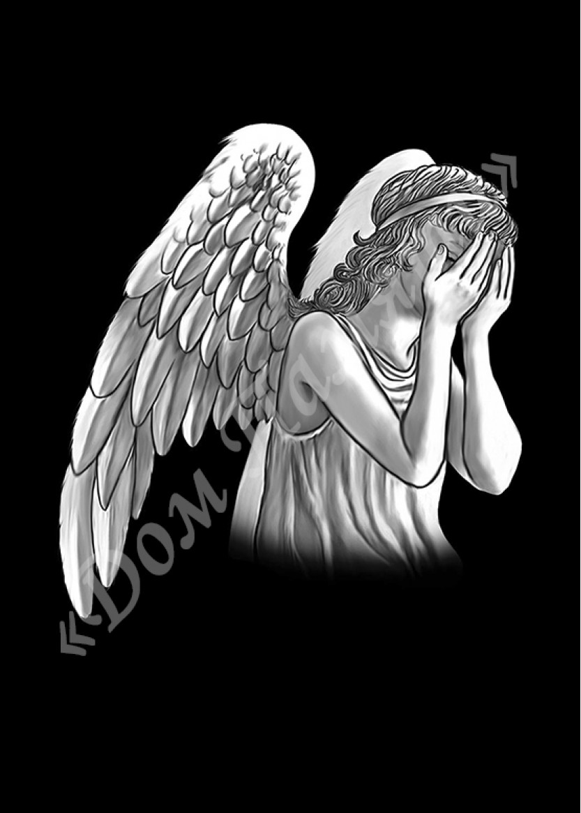 Ручная и машинная граверовка ангелов на граните - АНГ014