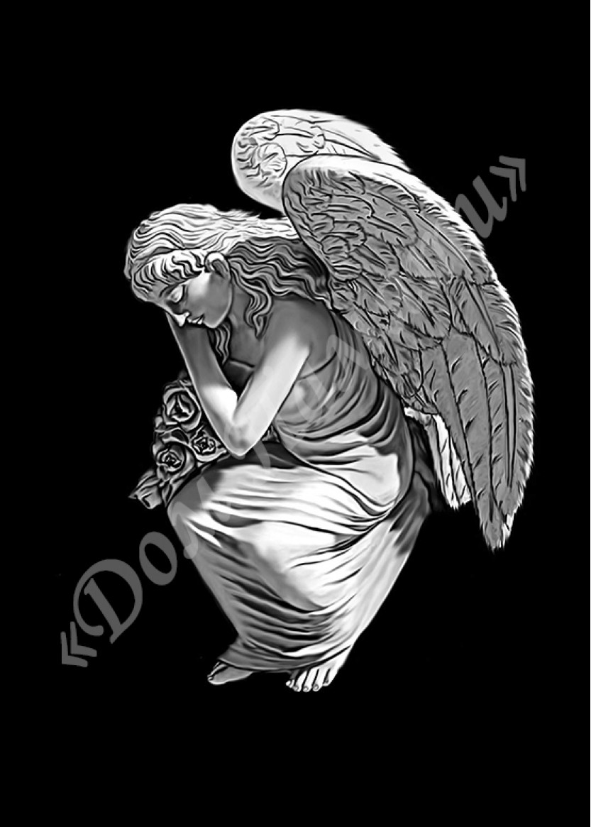 Ручная и машинная граверовка ангелов на граните - АНГ019