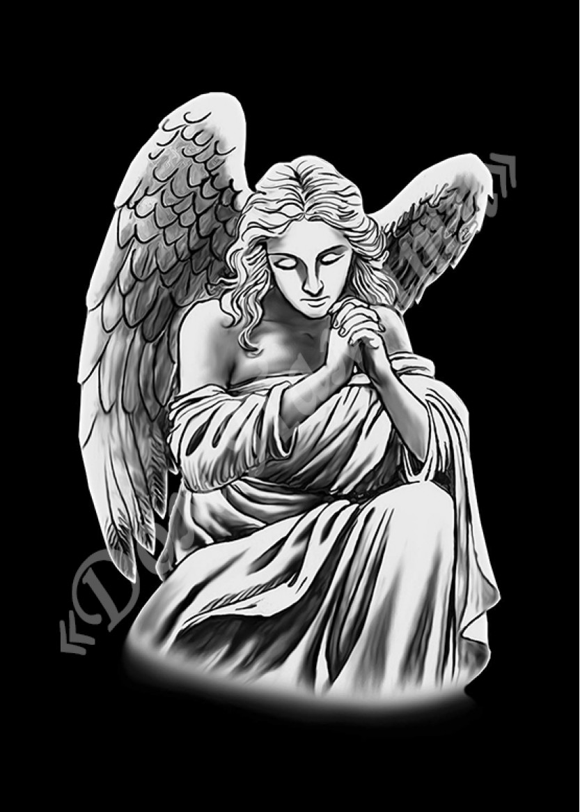 Ручная и машинная граверовка ангелов на граните - АНГ028